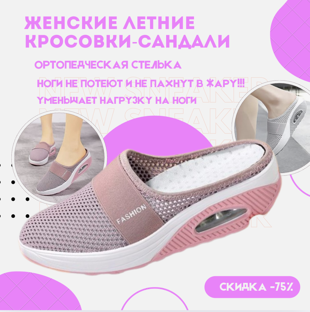 Комплексная технология легкой и дыщащей ткани женских кроссовок-сандалей, которая позволяет ходить свободно и без дискомфорта.